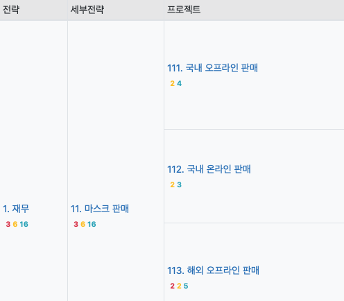 전략 > 세부전략 > 프로젝트로 구조화되어 있음