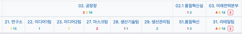 팀명 아래의 숫자들: 팀명을 기준으로 plan안의 진행 중에 있는 계획 수 -> 1)에서 말한 progress bar의 색 참고